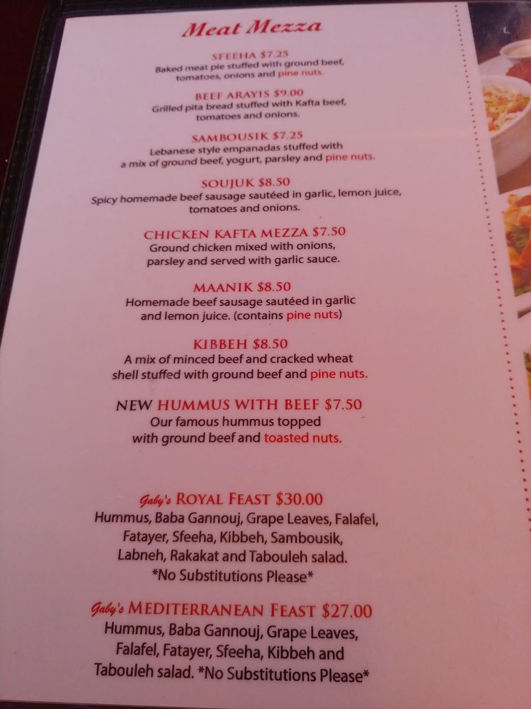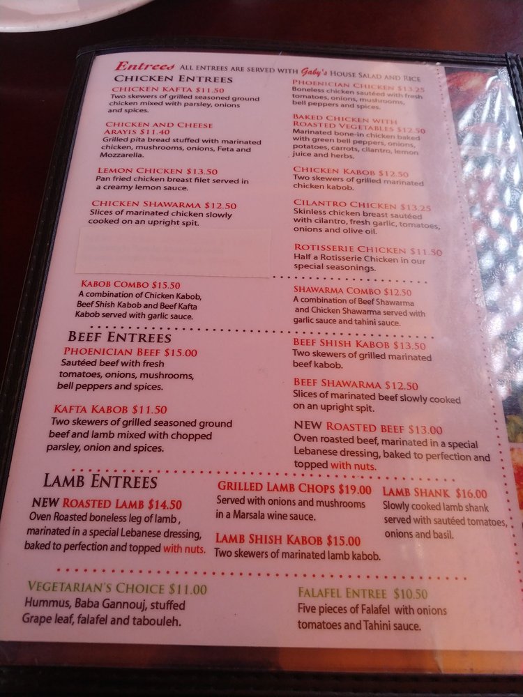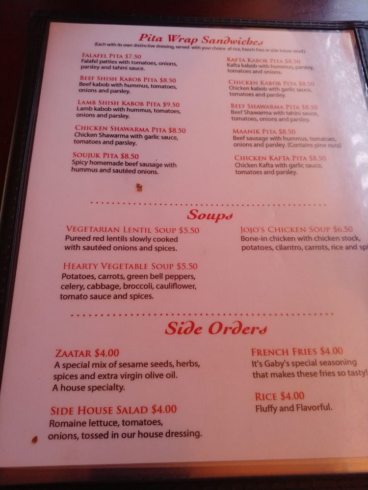 “ If youre in the mood for really good Middle Eastern food, Gabys should be your first stop. Everything is deeelicious. We had the lamb and beef kabob. It was cooked to perfection. We ordered the grape leaves as a starter. So good. The ... ”