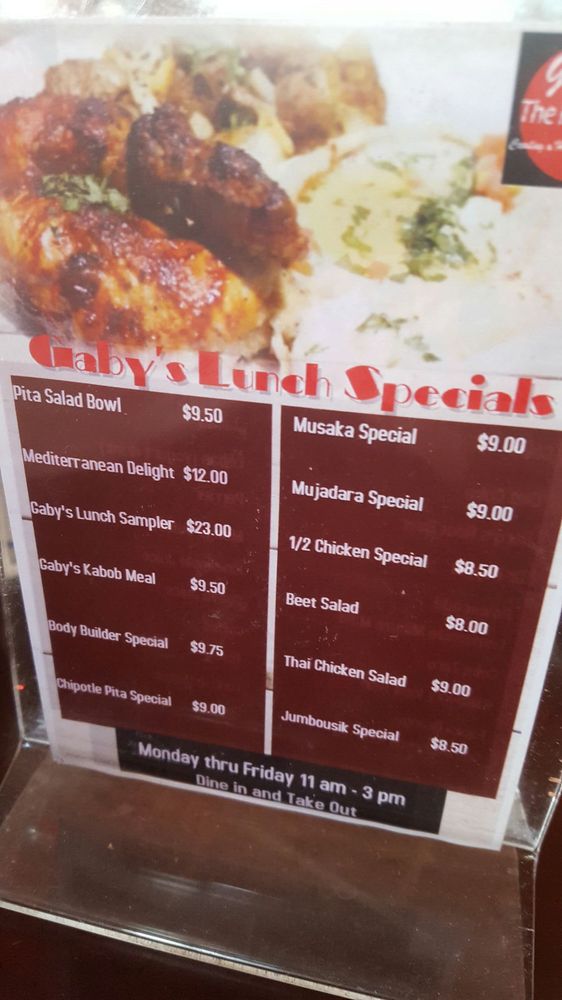 Whether you're looking for a quick lunch or a leisurely dinner, Gaby's Mediterranean Restaurant Cafe has something for everyone. So why not stop by and experience the flavors of the Mediterranean at Gaby's?